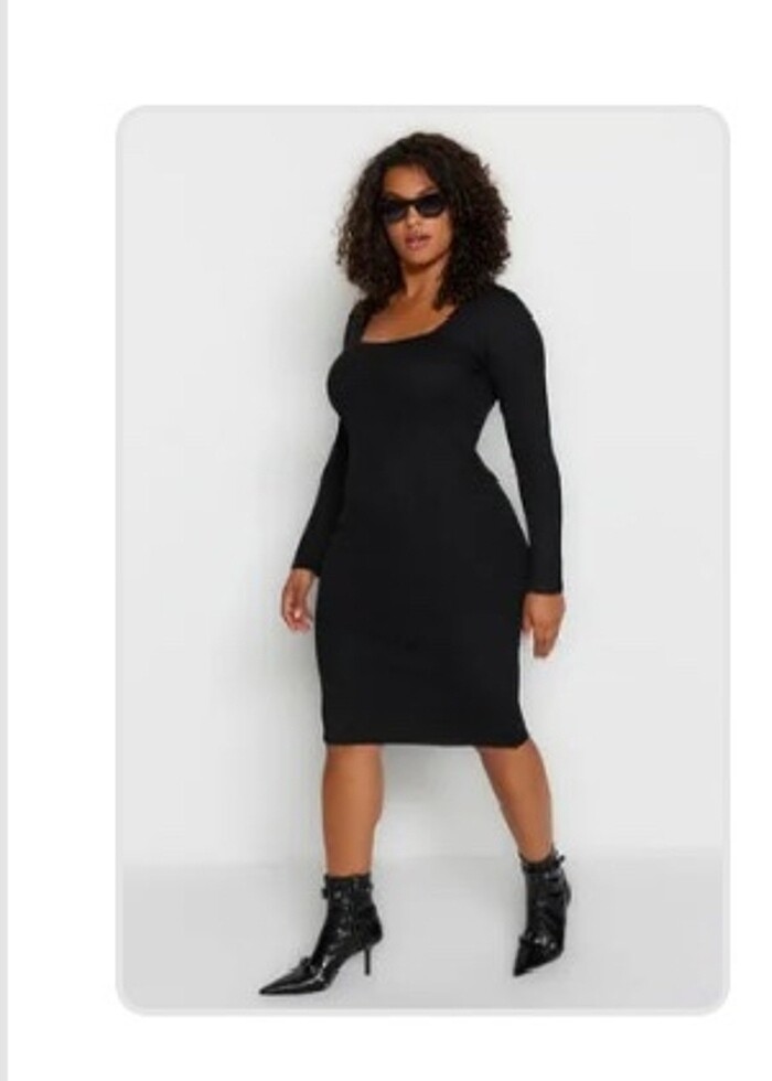 trendyol midi siyah triko elbise