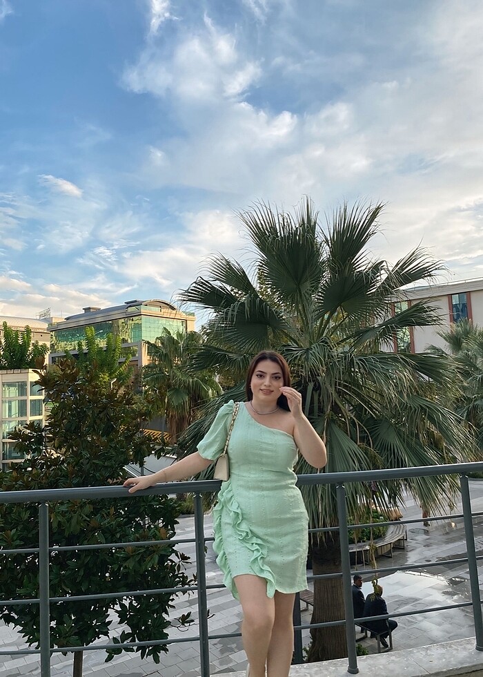 Fıstık yeşili Trendyol milla ya ait elbise tek kollu
