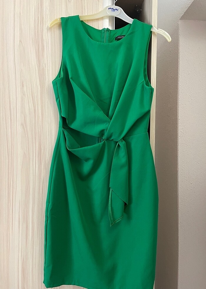 Hiç giyilmemiş etiketsiz yeşil göbek kısmı yarım açık elbise