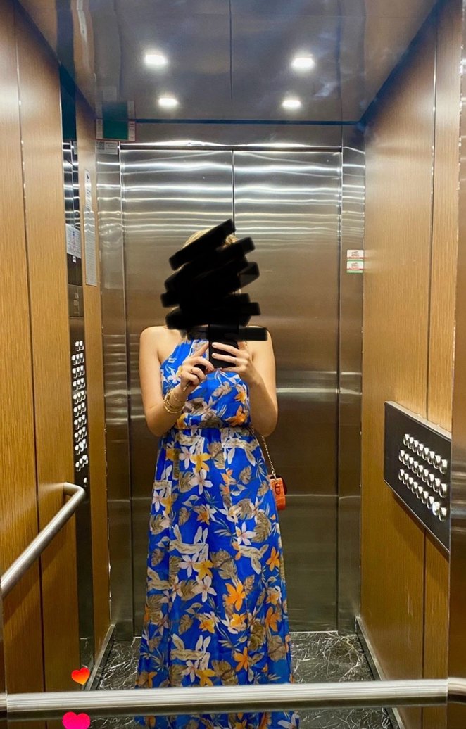 Halter yaka, astarlı, yırtmaç detaylı elbise, kusuru yoktur