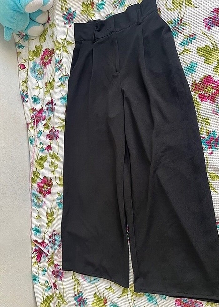 trendyol Milla geniş paça siyah kumaş pantolon bir kere giyildi temiz üründür herhangi bir sıkıntısı yoktur belden itibaren boyu 95 geliyor geniş paçadır kumaşı biraz dökümlüdür