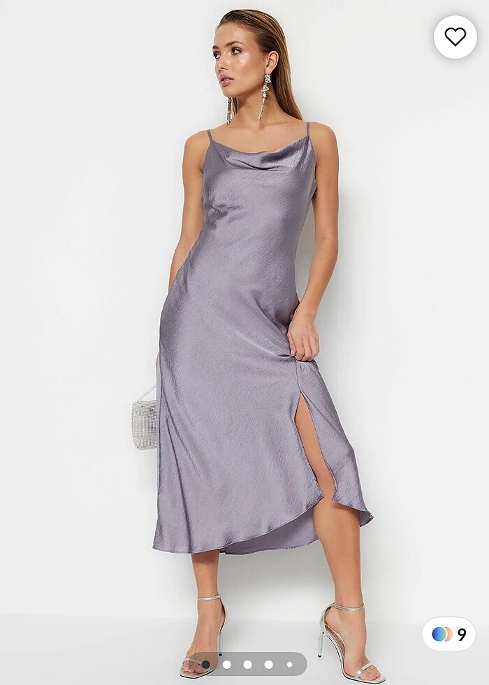 Trendyol milla gri saten gece elbisesi