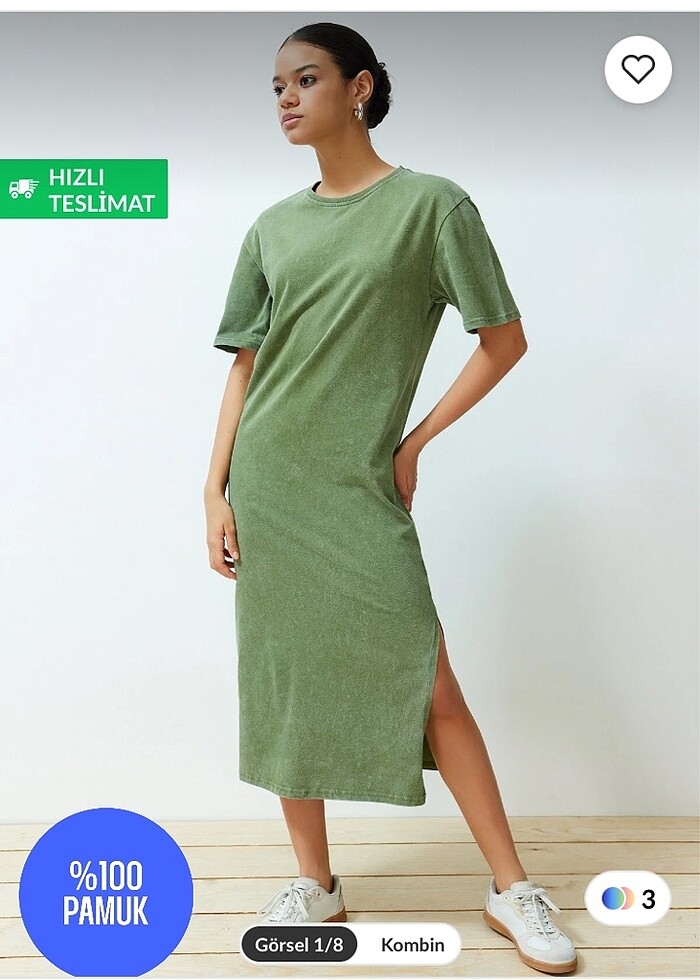 Trendyol milla haki uzun tisort elbise