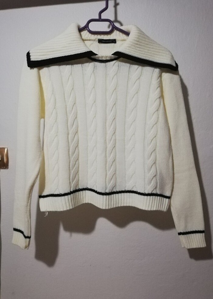 Trendyol markadır. Ekru renktir. 1 kere giyilmiştir. Alındığı gibidir. Tertemizdir. M bedendir. Yıkayıp ilana koydum. Boyu omuzdan itibaren 50 cm, iki koltuk altı arası 53 cm, kol boyu 58 cm'dir.