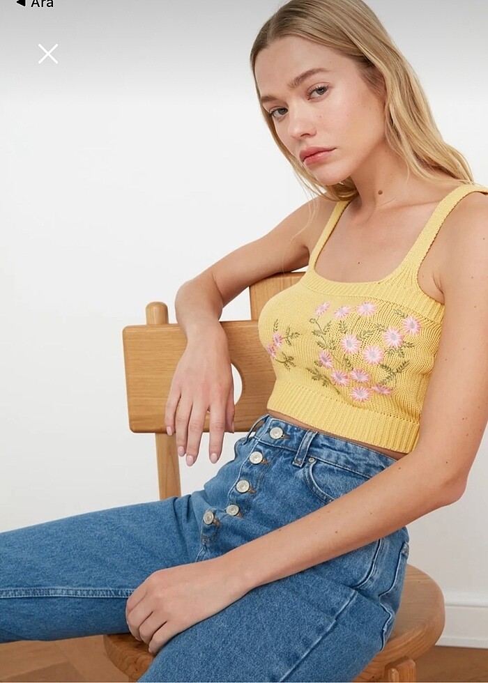 Trendyol & Milla nakışlı crop triko bluz