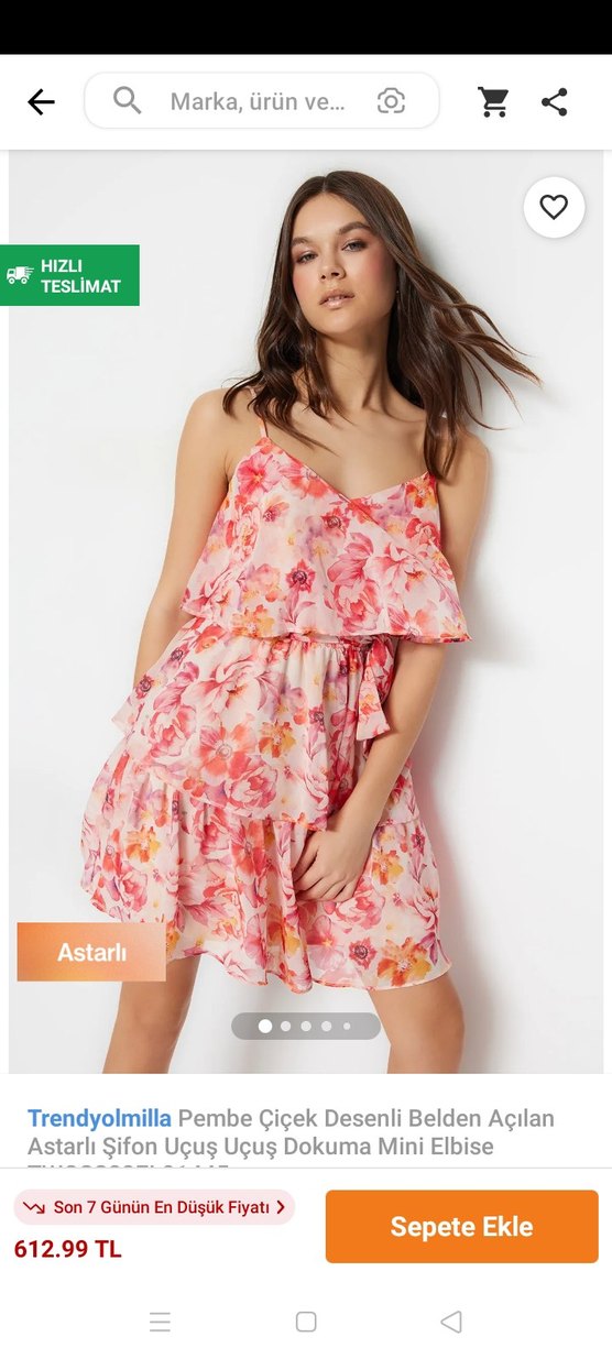 Trendyol & Milla'nın askısız, kolsuz mini elbisesi, bol kesim ve fırfır detaylara sahip. Hafif pembe batik desenli, astarlı ve sentetik kumaştan üretilmiştir. Romantik buluşmalar için uygun.hic kullanmadım