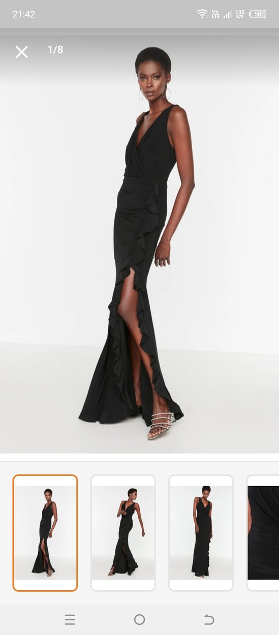 Siyah uzun elbise iki kez giyildi yeniden farksz hiçbir defosu yoktur