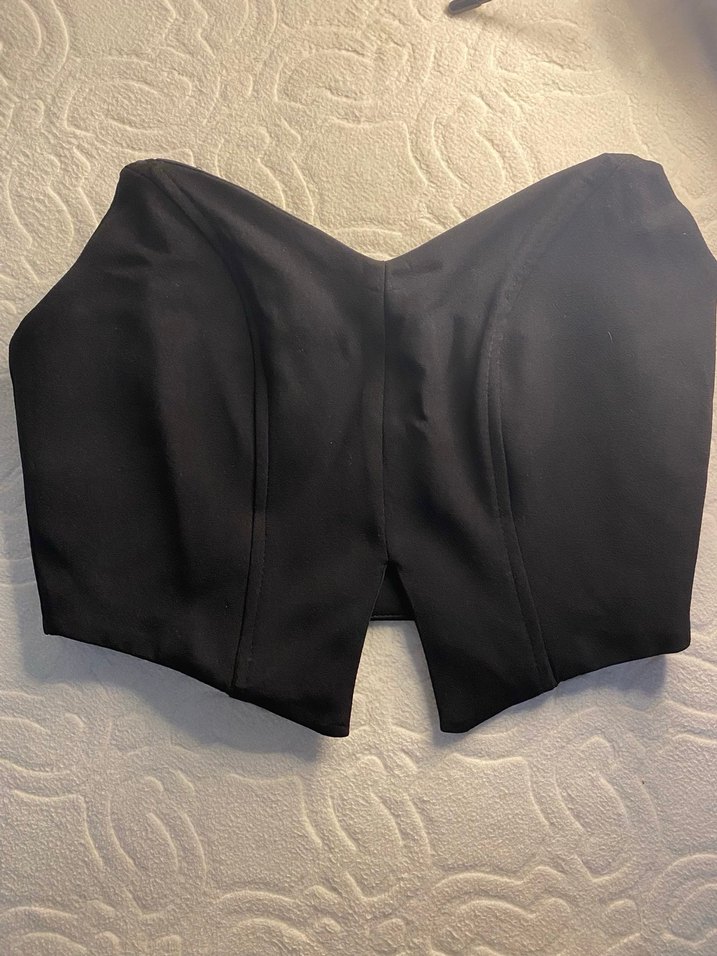 Siyah renkli, straplez ve mini uzunlukta, fit kesim bustiyer. Yumuşak ve parlak dokusuyla gotik tarzda, günlük kullanıma uygun şık parça. Kollu olmayan tasarım. 34 beden Sıfırdan farkı yoktur