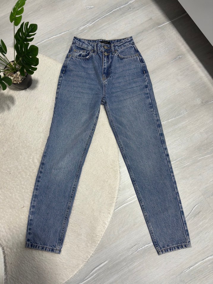 Çift düğmeli yüksek bel mom jean. 32 beden.