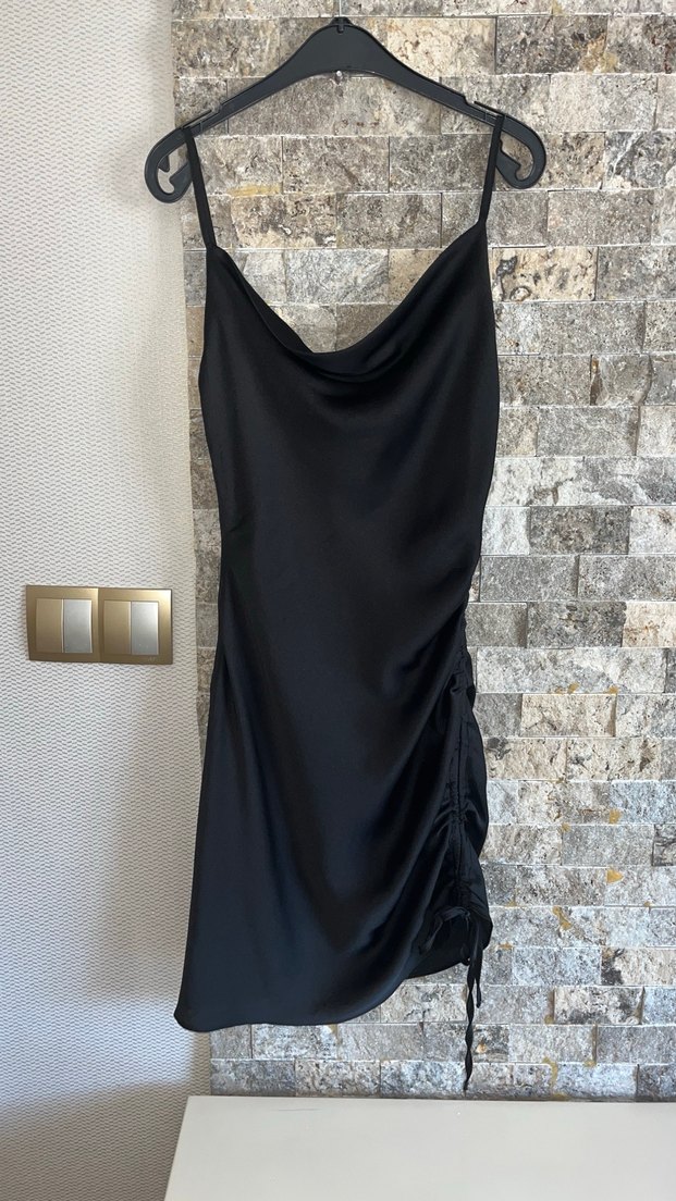 Hiç kullanılmadı saten elbise yandan büzülüyor yılbaşı elbisesi
