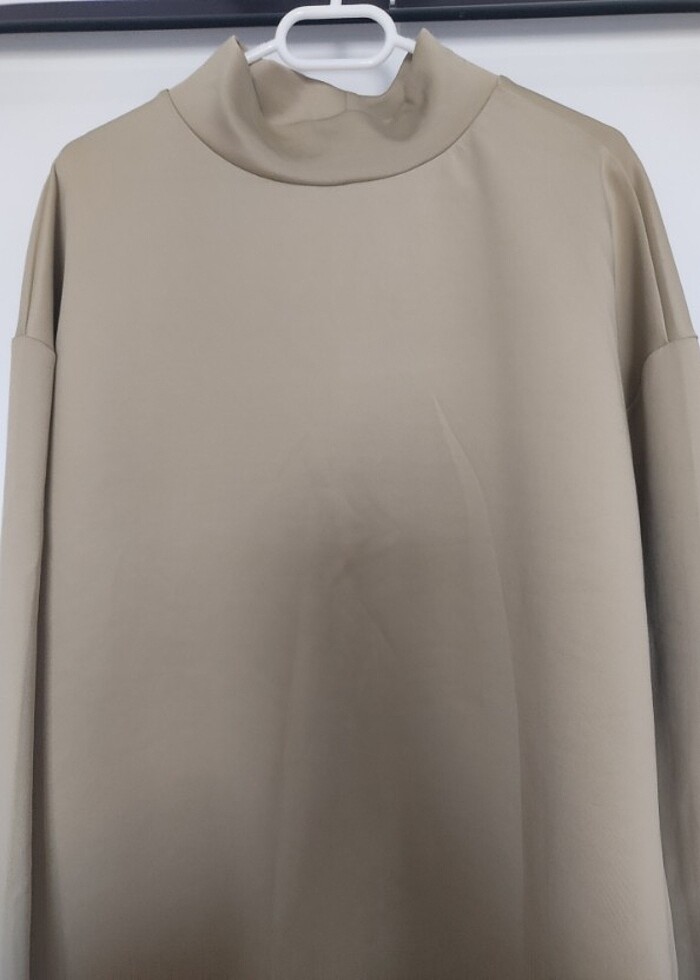 Temiz ürün 3 4 kere anca kullanıldı minik bir kusuru var giyince belirsiz ekledim fotoğrafa 83 cm sütlü kahveden daha açık bir tonda bol balıkçı yaka tarzında