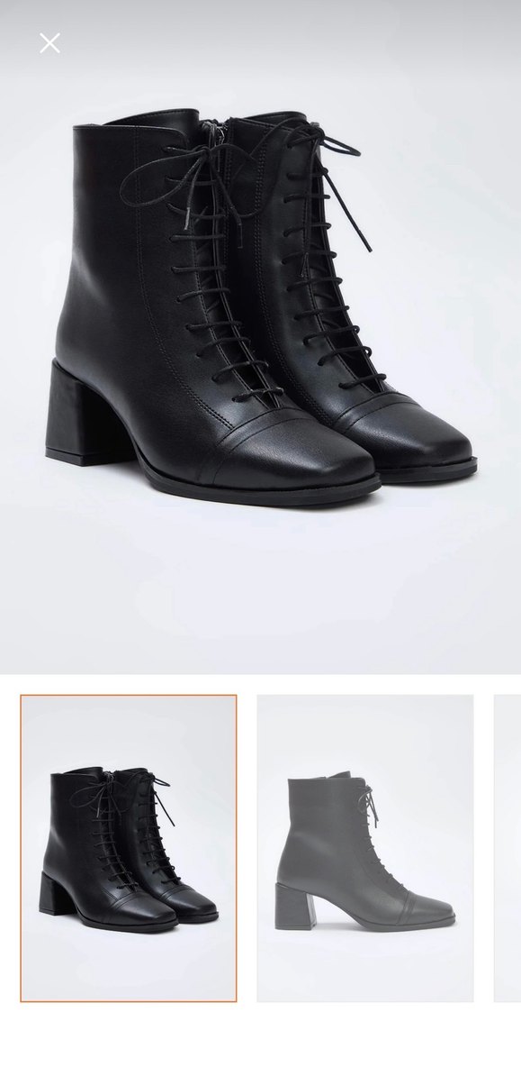 Siyah, bağcıklı ve blok topuklu, kare burun kadın botu, gündelik kullanıma uygun minimal ve zahmetsiz şıklık sunar. Sadece 1 kere giydim bir etkinlik için. Genişliği bağcıklardan ayarlanabiliyor.