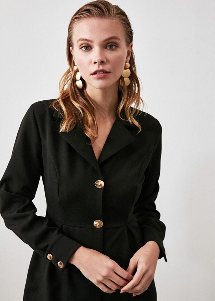 Trendyol siyah dugmeli elbise