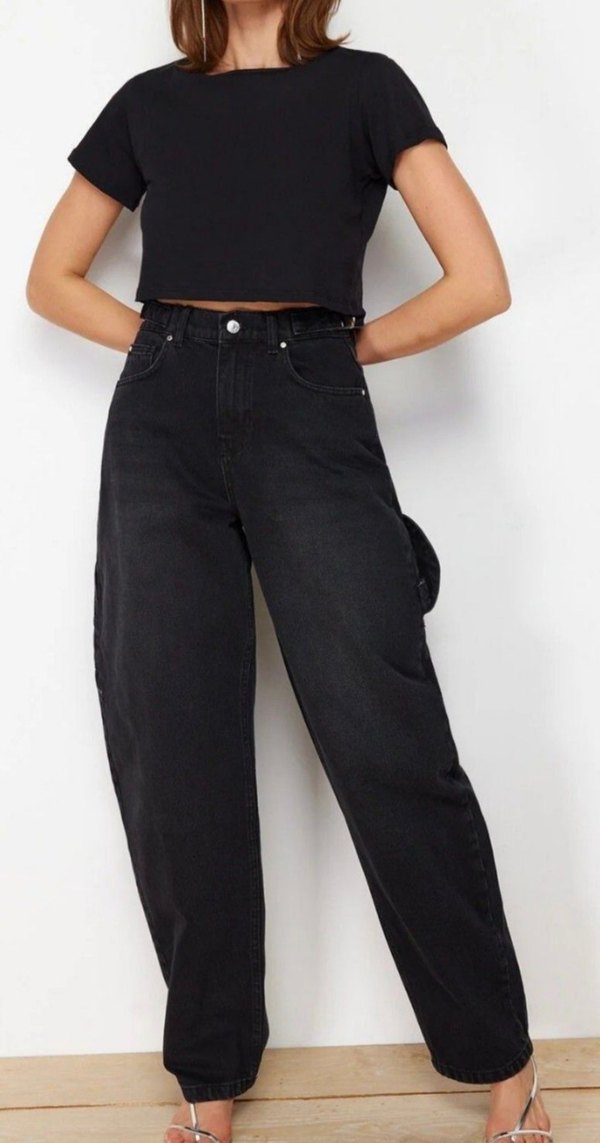 Trendyol Siyah Rahat Kesim Baggy Kadın Kot Pantolon