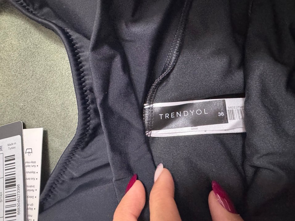 Trendyol Siyah V Yaka Fermuarlı Tulum