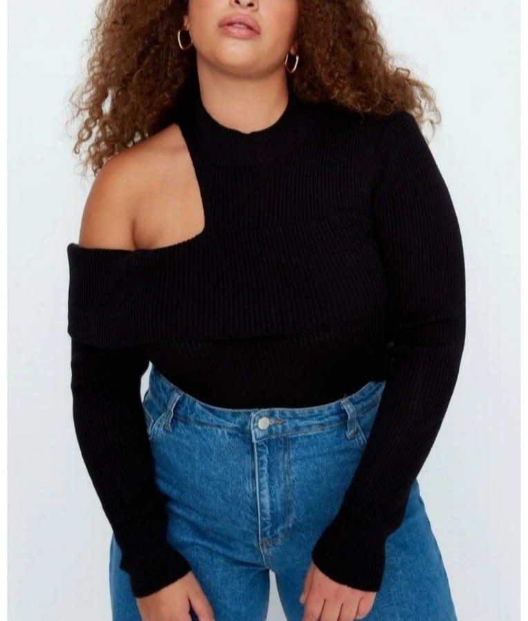 Esnek kumaşlı, yumuşak, tek omzu açık triko kazak etikette 5xl yazıyor ama xl bedene uygun. en 42cm boy 65cm #trendyol #kazak