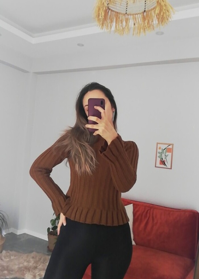 Triko etek ucu fırfırlı kazak. 1 kere giydim
