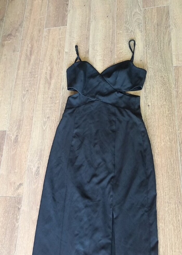 iki koltuk arasi 36cm boyu 150 cm. 1 gece giyildi. esnek kumaş .. hijyeni saglandi.astarli .kultuk arasi acık..tek yan yirtmacli ..1970 tl ye alindi.cok ucuz verecegim