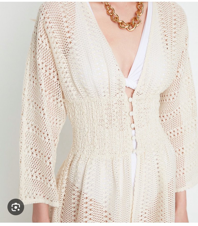 Hic giyilmedi, bele oturan bi plaj elbisesi. Bel kismi lastikli oldugu icin 38/40 bedene de olur.