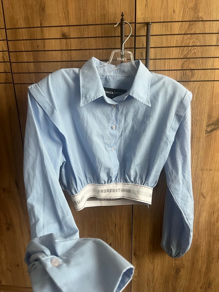(TRENDYOL X SAGAZA)Mavi Düğmeli Mini Gömlek