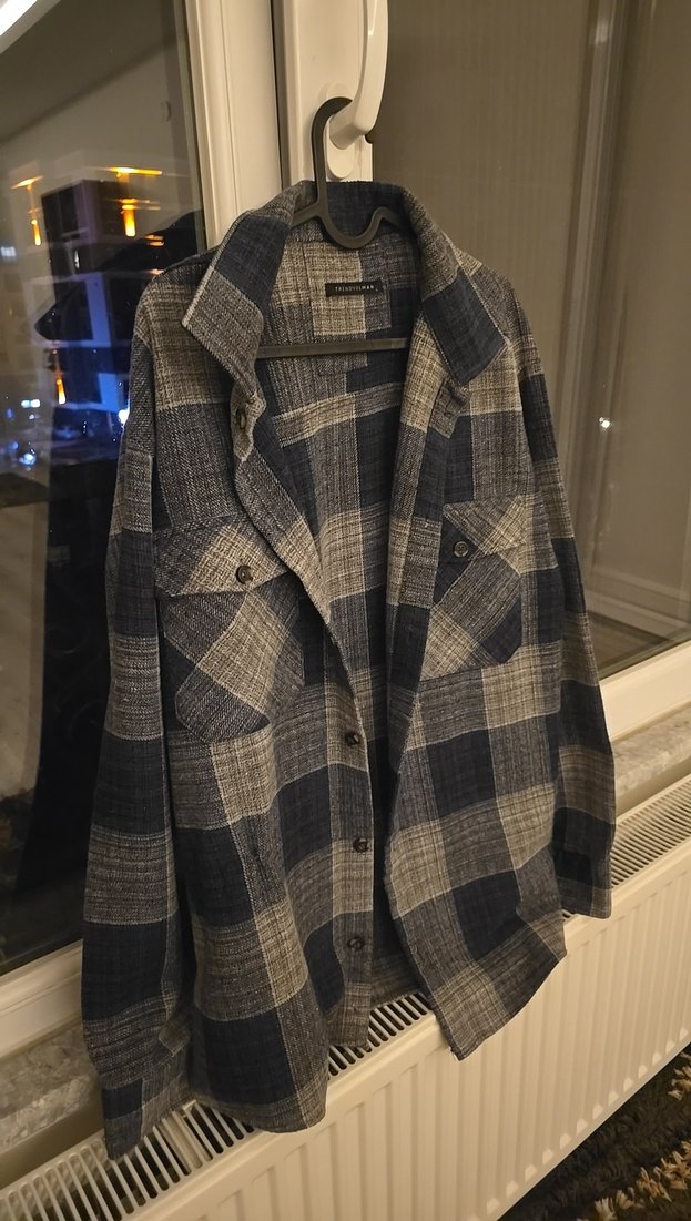 TRENDYOLMAN Gri Ekoseli Uzun Kollu Gömlek