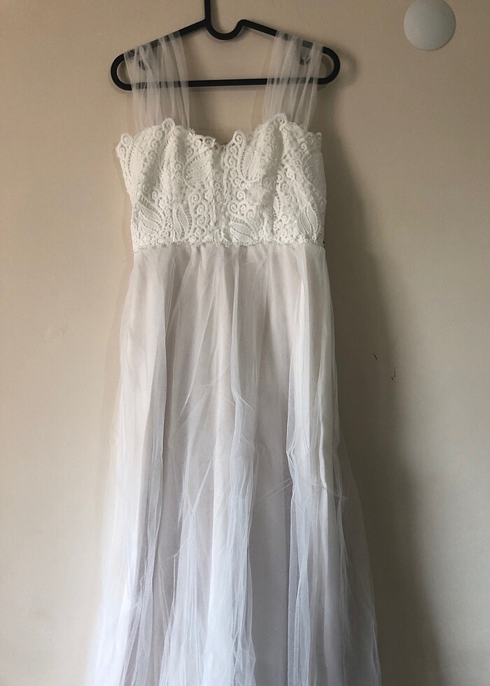 Milla gece elbisesi. Dış çekim yada nikah için çok uygun etiketi üzerinde