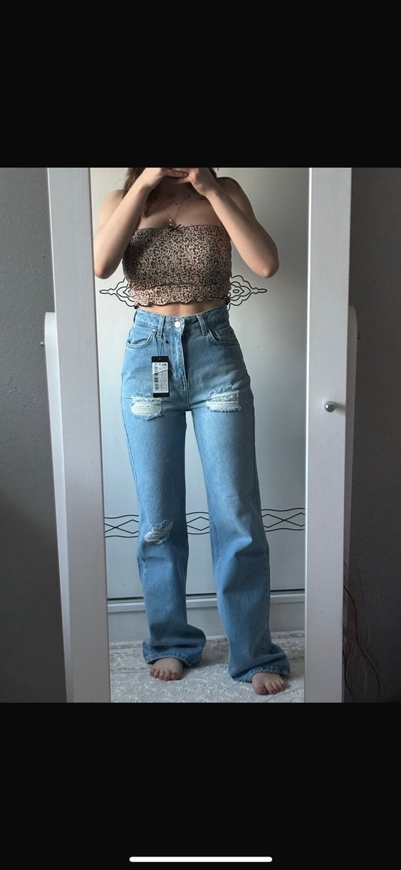 Hiç giymedim 34 beden 53 kiloyken aldım içinde rahat edemediğim için satıyorum hiç dışarda giyilmedi etiketli duruyor iade süresini geçirdim yazın almıştım dolapta duruyor kalıbı bence dar 50 kilo ve altı kızlara çok iyi olur modeli baya güzel keşke bana olsaydı