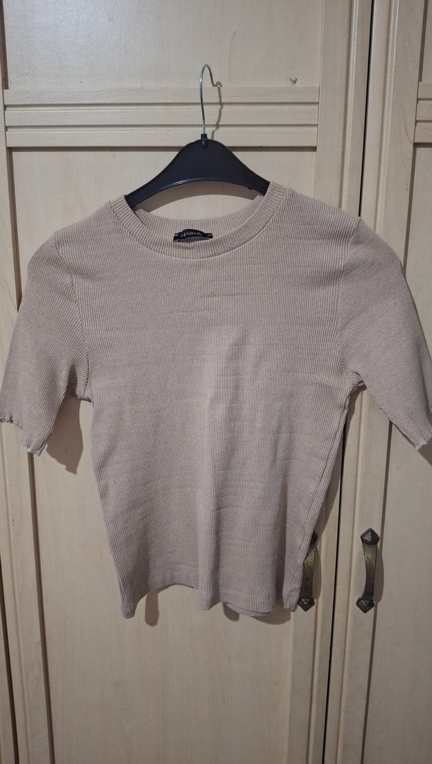 Trendyolmilla Bej Kısa Kollu Fit Kesim Kadın Kazak