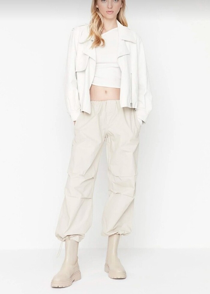 trendyolmilla bej stoperli paraşüt pantolon