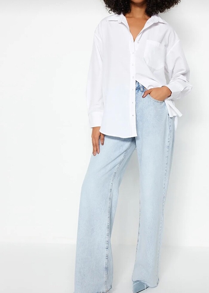 Trendyolmilla Beyaz Boyfriend Gömlek