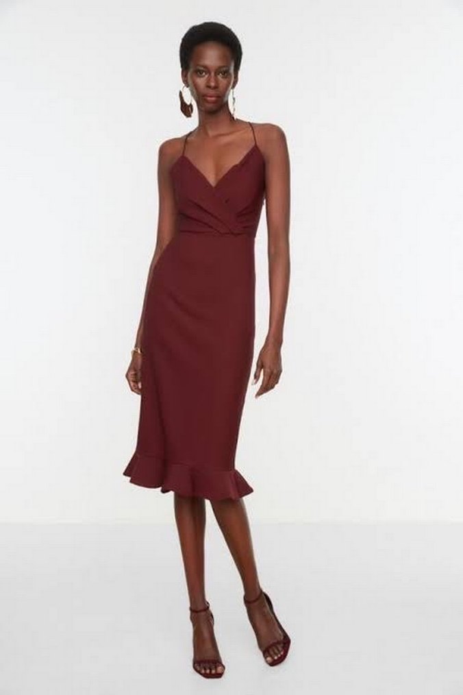 Trendyolmilla Bordo Midi Sırt Dekolteli Kadın Elbise