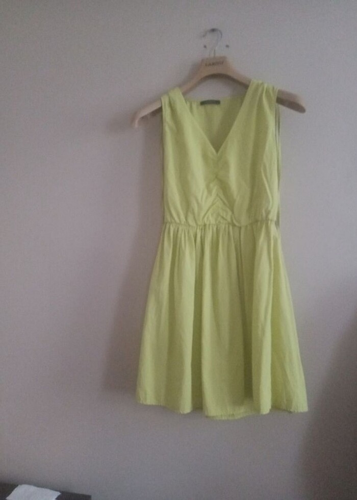 Ürün hafif yeşile kaçan sarı renkte. Yırtık vs yok. Çok rahat. Kumaşı hafif naylonumsu tam yazlık. İç göstermez. Dekolte ideal. #elbise #vyakaelbise #günl #trendyolmilla ükelbise