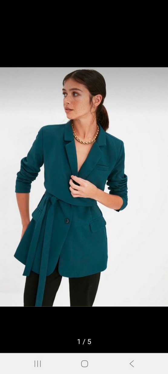 Kadınlar için, kemerli ve yakalı uzun kesim ceket. Ofis ve günlük sokak stiline uygundur. 42 beden yeni giyilmedi