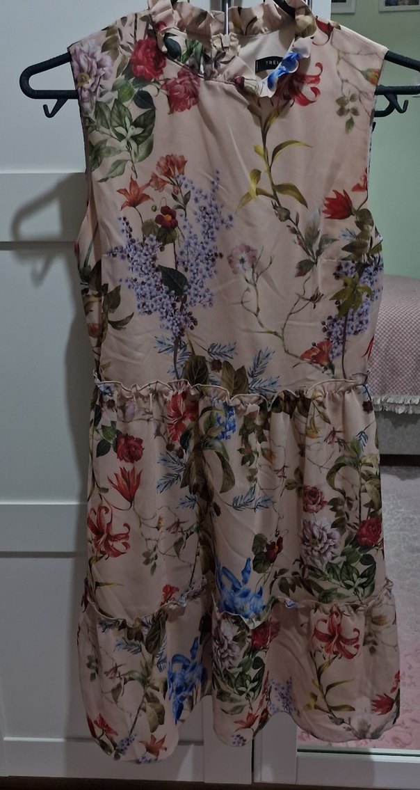 Trendyolmilla Çiçek Desenli Bohem Midi Elbise Çiçek desenli, kolsuz, pastel tonlarda bohem midi elbise. V yaka ve fırfır detaylı, bol kesim, yumuşak sentetik kumaştan ve astarlı olarak yapılmıştır. Diz hizasında boyu vardır.