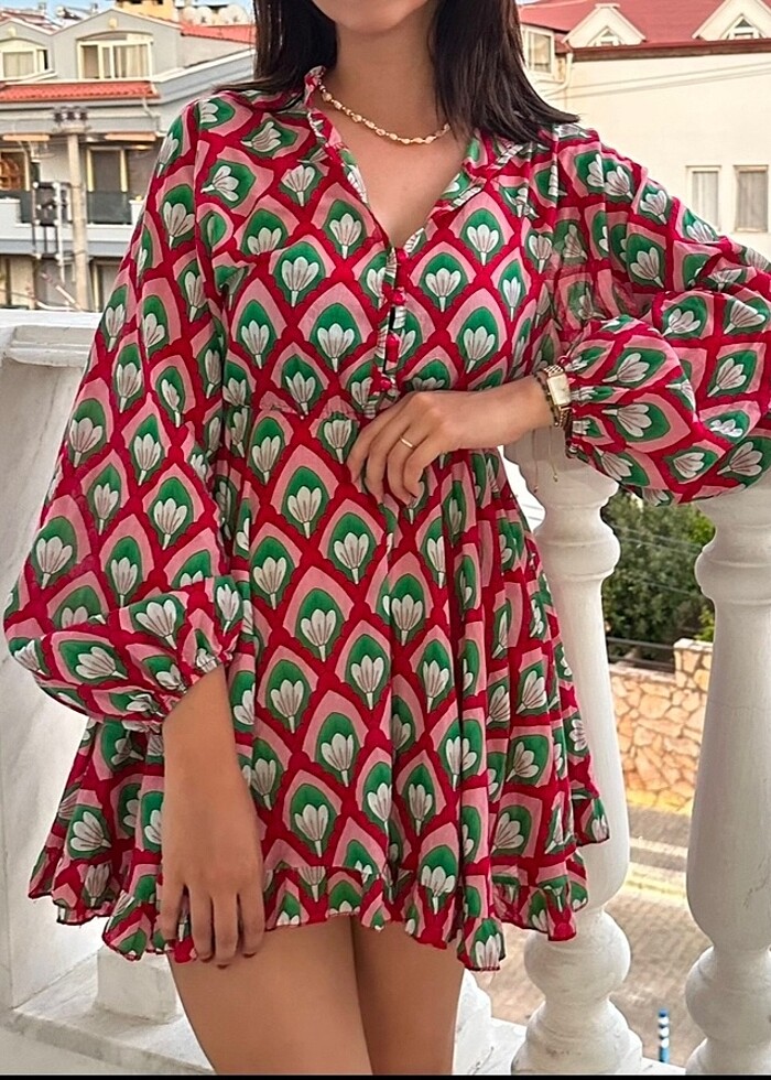 Trendyolmilla Desenli Plaj Elbisesi