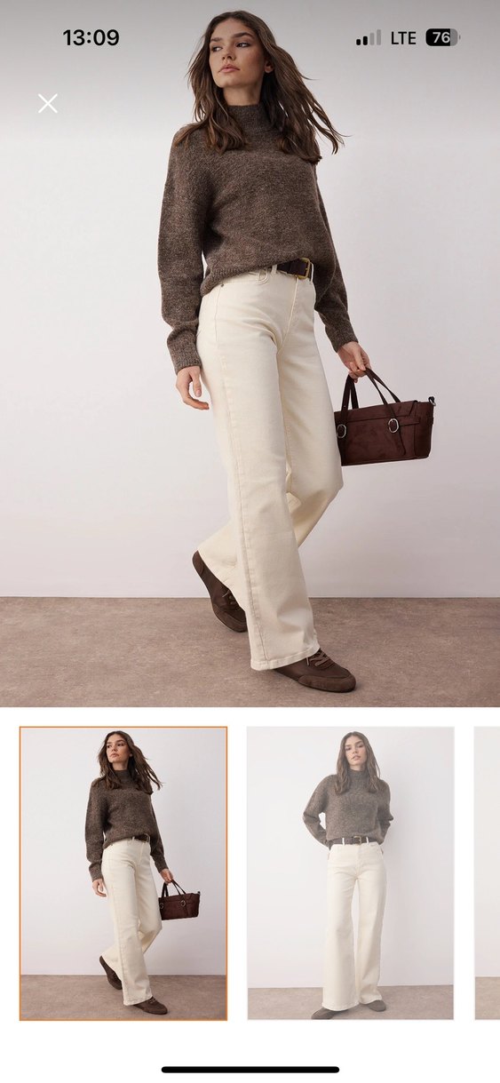 Trendyolmilla ekru yüksek bel wide leg jeans