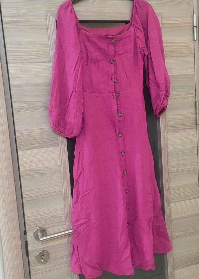 Trendyolmilla cok tatlı elbise. 34 beden fakat, 36 bedene de rahat olur. Bir kez giydim sadece. Ayni renkte kemeri de var. Rengi pembe ve mor arası tam olarak tanimlayamiyorum