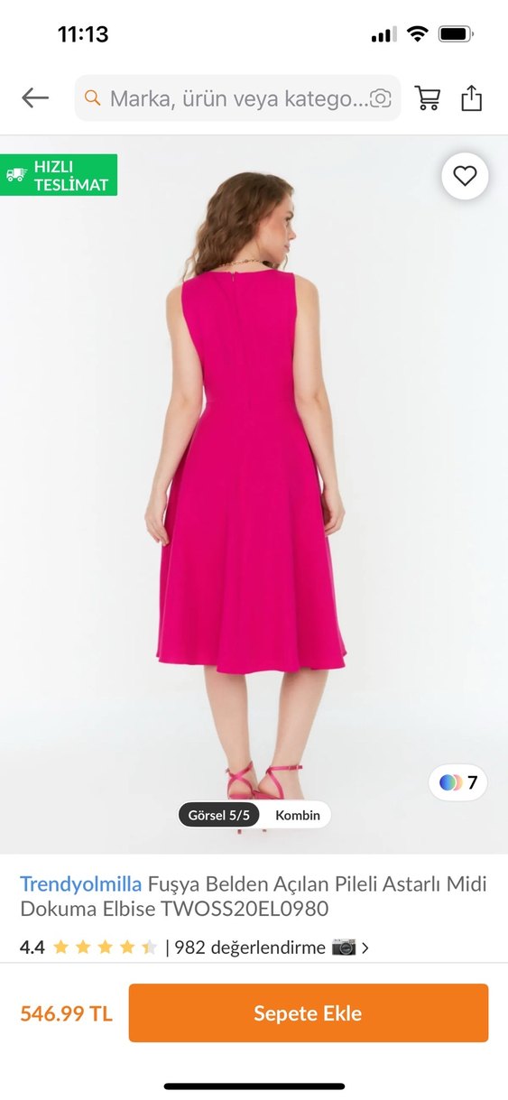 Trendyolmilla Fuşya Pilili Midi Elbise