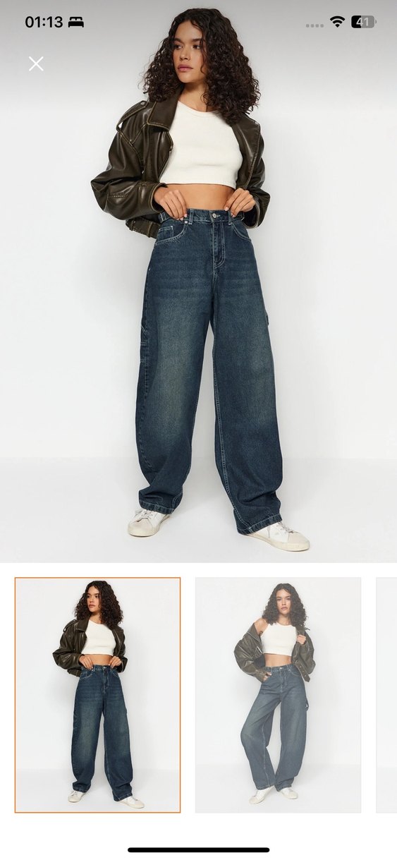 Lacivert denim kumaştan, gri tie-dye deseniyle geniş paça, günlük rahat sokak stili için zahmetsiz şıklık sunar.