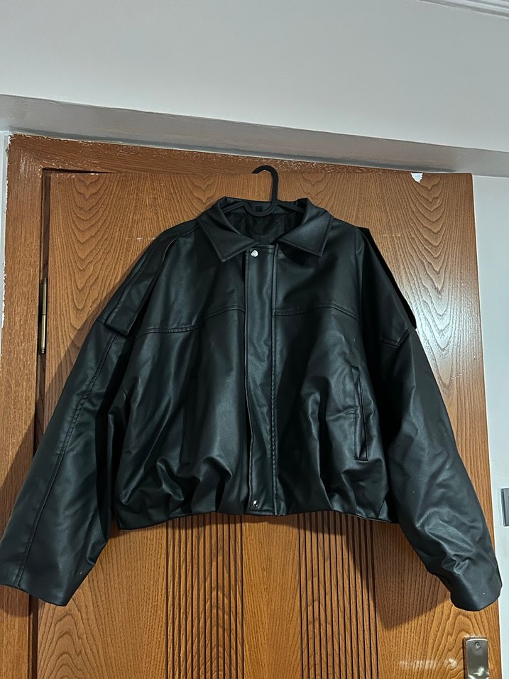 Siyah Deri ceket 1 kere giyildi üzerine belli belirsiz simler var