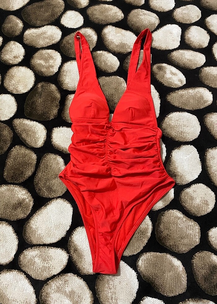 kırmızı v yaka drapeli dekolteli 34 beden mayo sadece bir kere giyilmiştir