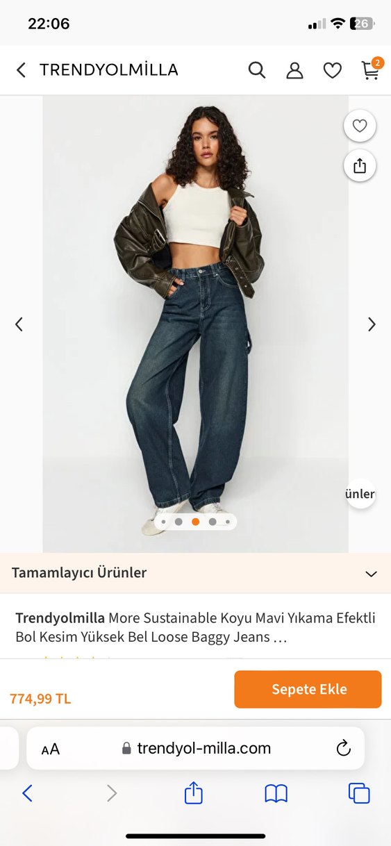 Trendyolmilla marka koyu mavi yıkama efektli, bol kesim, yüksek bel, kemerli jean. Rahat ve günlük kullanıma uygun. Paca kısmının görselini ekledim ama başka sorunu yoktur