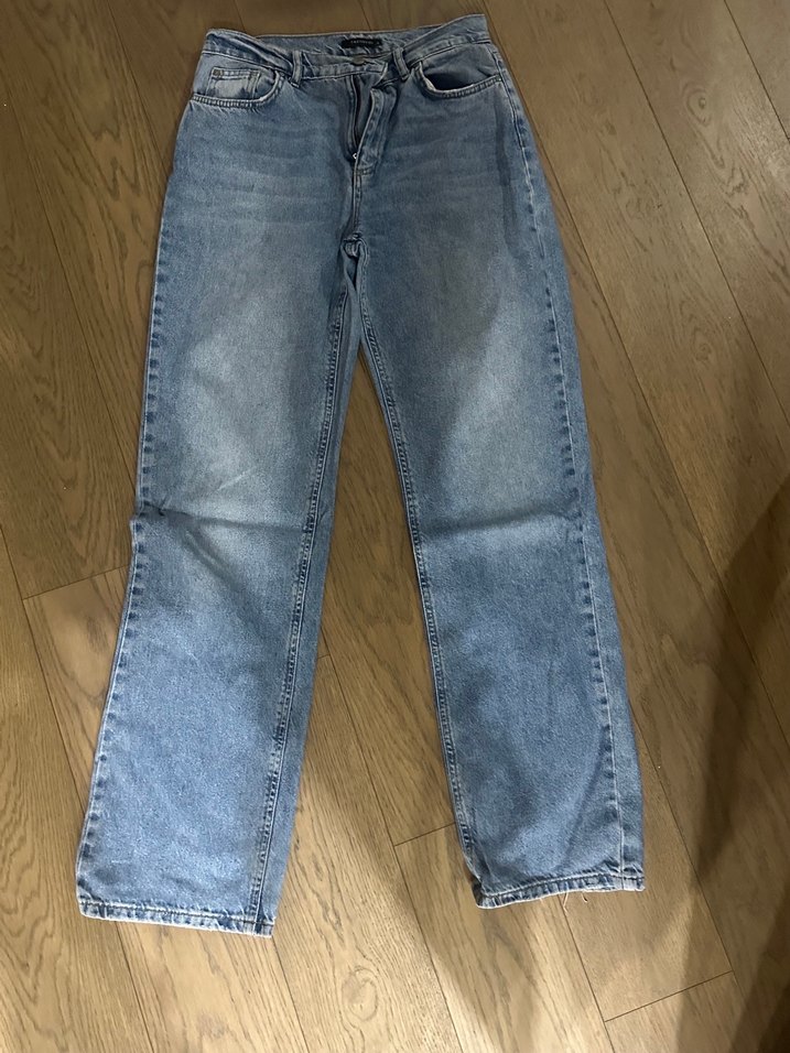 mavi renkte, düğmeli kapamalı, normal mom kadın denim jean. Streetwear tarzına uygun.