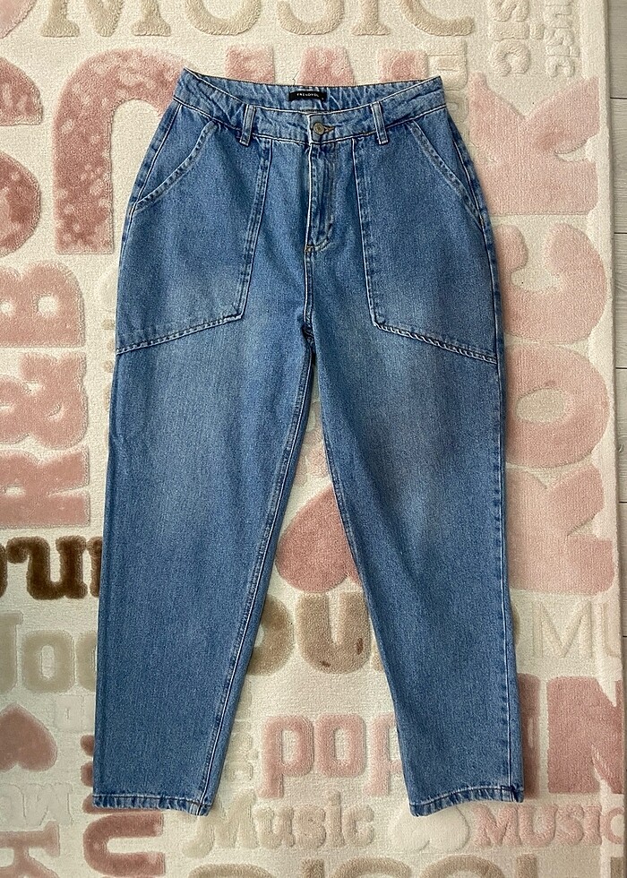Hiç giyilmedi sadece yıkandı temiz defosu yok. 38-40 bedene olur beliniz ince kalçanız genişse daha iyi olur çünkü basen kısmı baya geniş. Rengi fotoğraftan bir tık açık. Bel 36 cm, basen 56 cm, paça 16 cm, iç bacak boyu 68-70 cm civarı