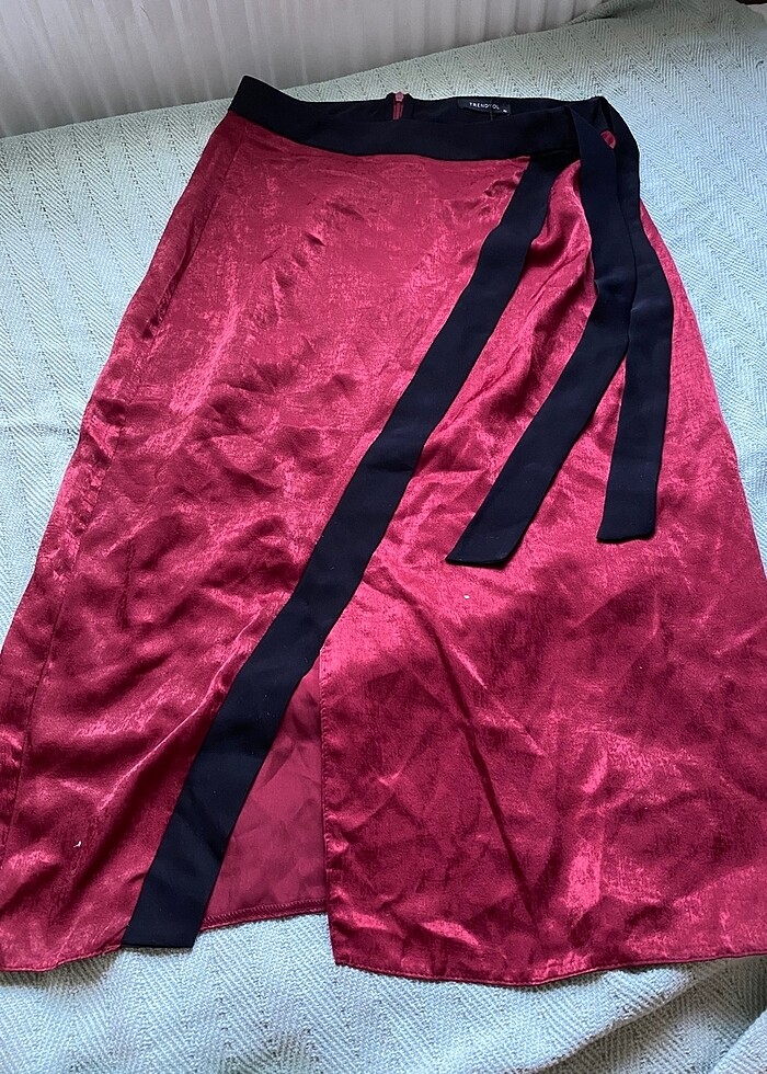 Trendyolmilla saten etiketli midi yırtmaçlı etek
