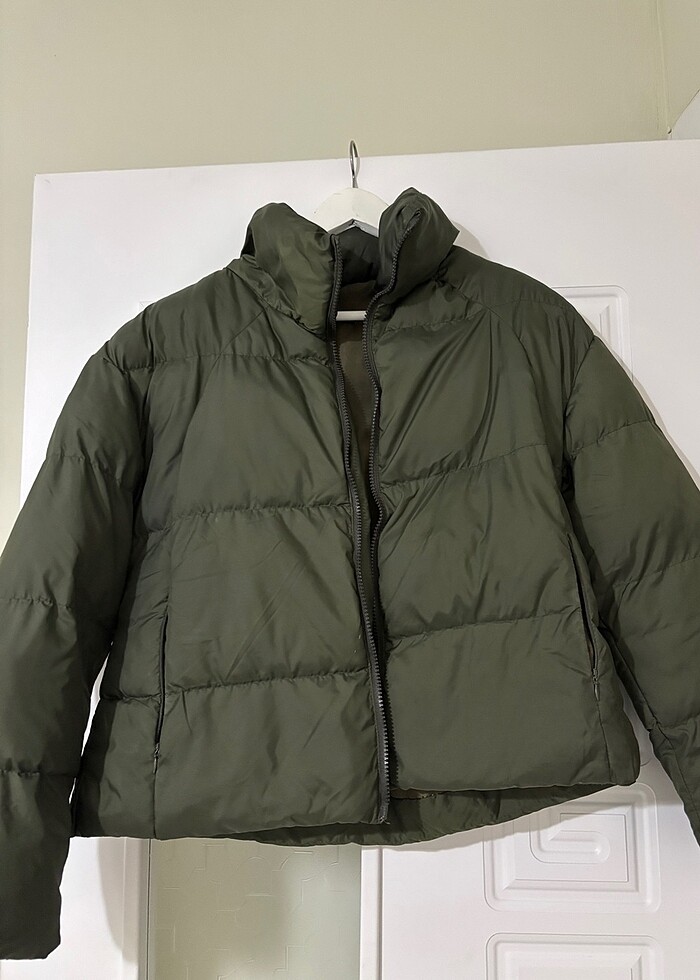 3-4 kere giydim crop şıktır Haki rengi Oversize m-l kadar olur