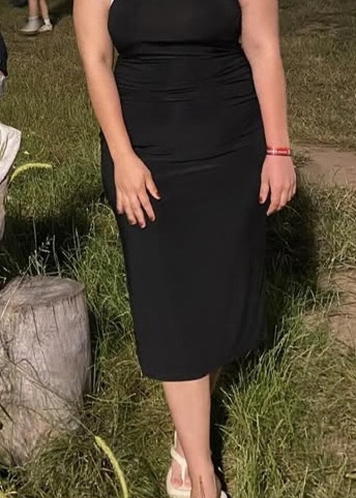 Trendyolmilla siyah boyundan bağlamalı sırt dekolteli elbise