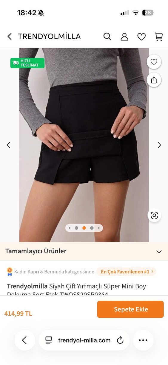 Trendyolmilla markasına ait, çift yırtmaçlı, siyah renkli, sentetik kumaştan yapılmış, günlük sokak stiline uygun, süper mini ve vücuda oturan etek. Bir kere giyildi