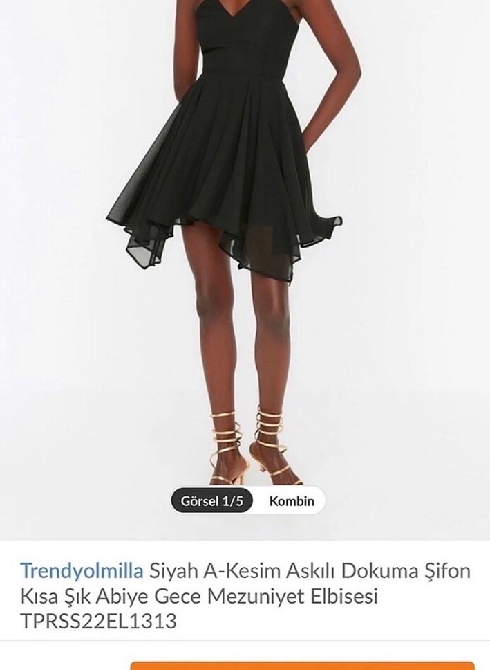Trendyolmilla marka, siyah mini abiye elbise. Askılı, straplez yaka ve dantel detaylı, sentetik kumaştan. Gösterişli ve gotik tarzda, parti için uygun. Sadece mezuniyetimde bir kere giydim bir daha hiç giyilmedi, hiçbir kusuru yok yeni alınmış gibi. Şu anki fiyatına trendyolmilla sayfasından bakabilirsiniz. Ben aldığım fiyata satıyorum.