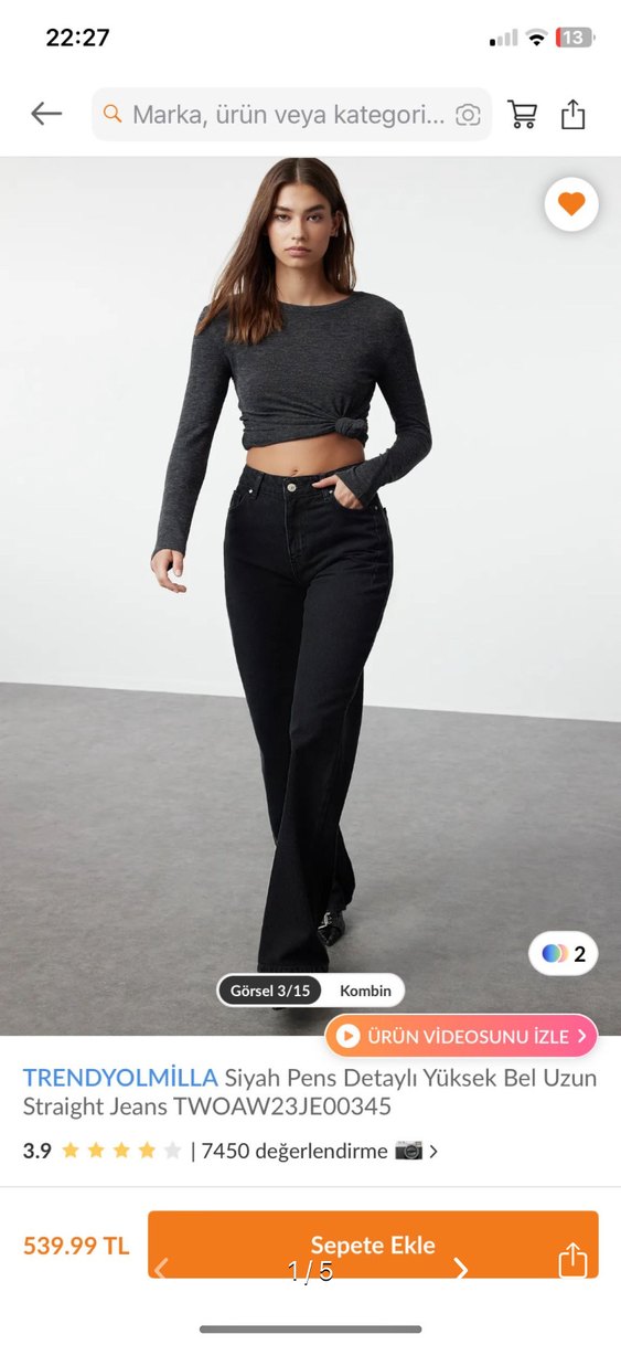 TRENDYOLMİLLA siyah, pens detaylı, yüksek bel ve düz kesim kot pantolon. Günlük kullanıma uygun, rahat ve şık bir denim parça. Hiç giymedim